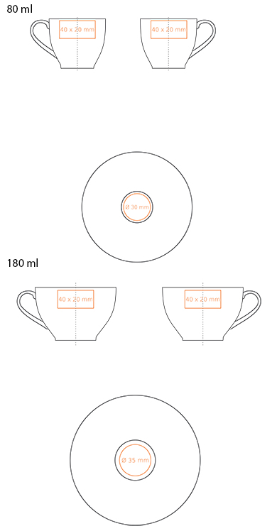 Dostępne techniki zdobienia dla produktu PRINCESS SET: *  (80 / 180 ml)
