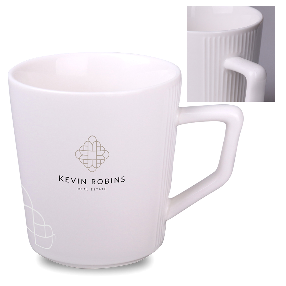 Oryginalny kubek wykonany z wysokiej jakości porcelany. Posiada designerskie przetłoczenia bo obu stronach ucha. Wyróżnia go ciekawie zaprojektowane ucho.