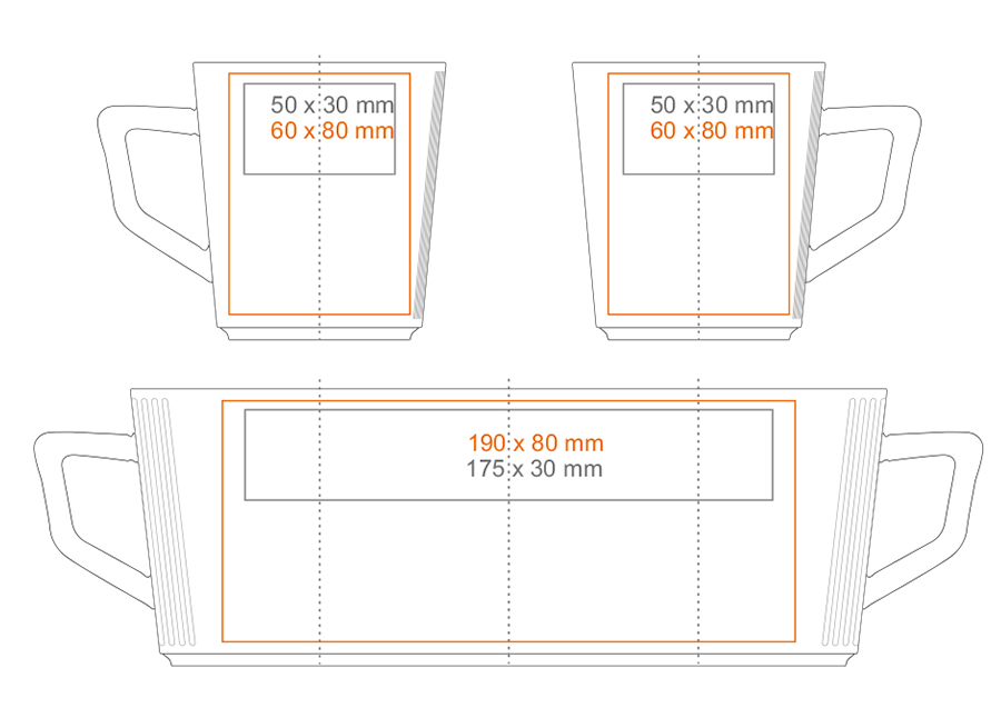 * W przypadku projektów wybiegających poza standardową powierzchnię nadruku prosimy o kontakt z działem handlowym.