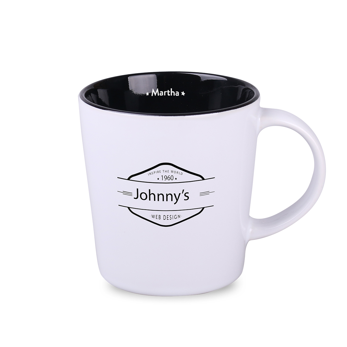 Klasyczny kubek o dużych możliwościach w zakresie customizacji. Posiada wnętrze w kilku modnych odcieniach. Jego duże proste ścianki doskonale wyeksponują naniesiony na niego nadruk.